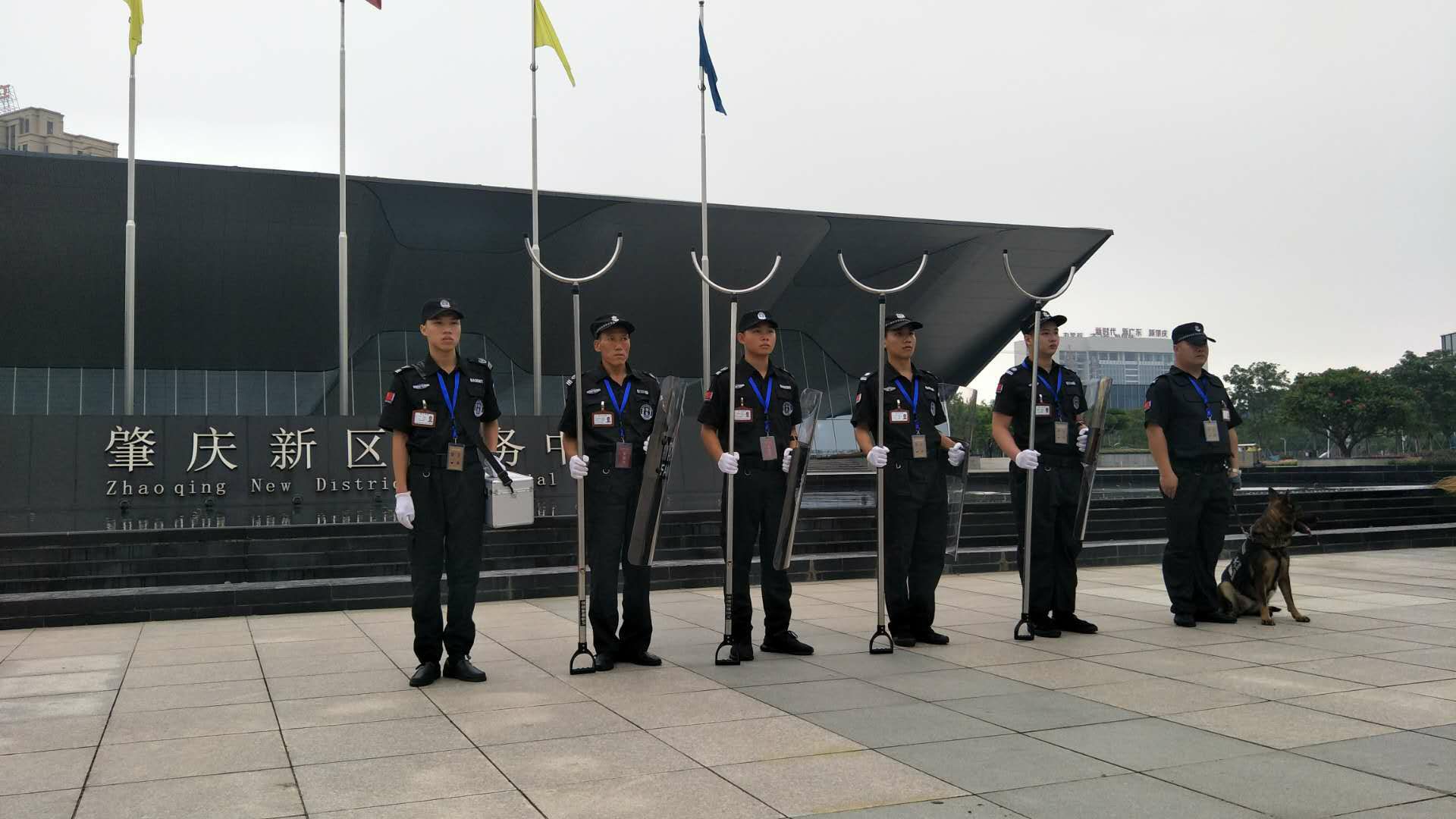 安保公司的警犬、防暴器材,医药箱万事具备